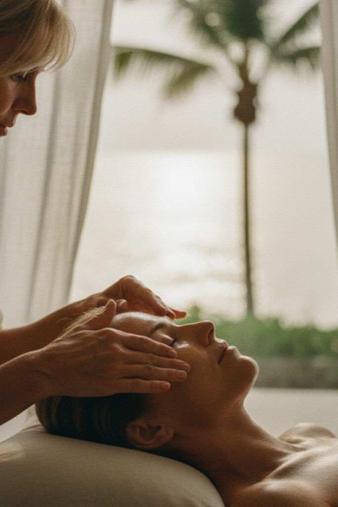 During her facials, Julia attends not only to the skin’s vitality but also to the deeper structures beneath—addressing postural imbalances and muscular restrictions that gradually diminish tone and youthful radiance. She often invites clients to envision the face as a blossoming flower and the neck as its stem: only when the stem is strong and nourished can oxygen and nutrients flow to the bloom and fully flourish. Her method draws upon a mastery of specialized techniques—lymphatic drainage, remodeling massage, buccal massage, cupping, and gua sha—each harmonized to restore circulation, release tension, and rejuvenate from within. This approach regards the body as an interconnected whole, recognizing that true beauty emerges from internal balance as much as external care.